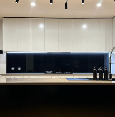 We create custom-cut glass splashbacks for: